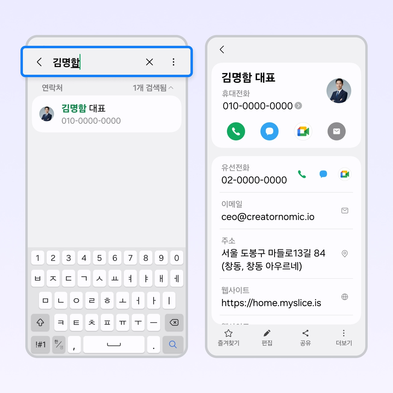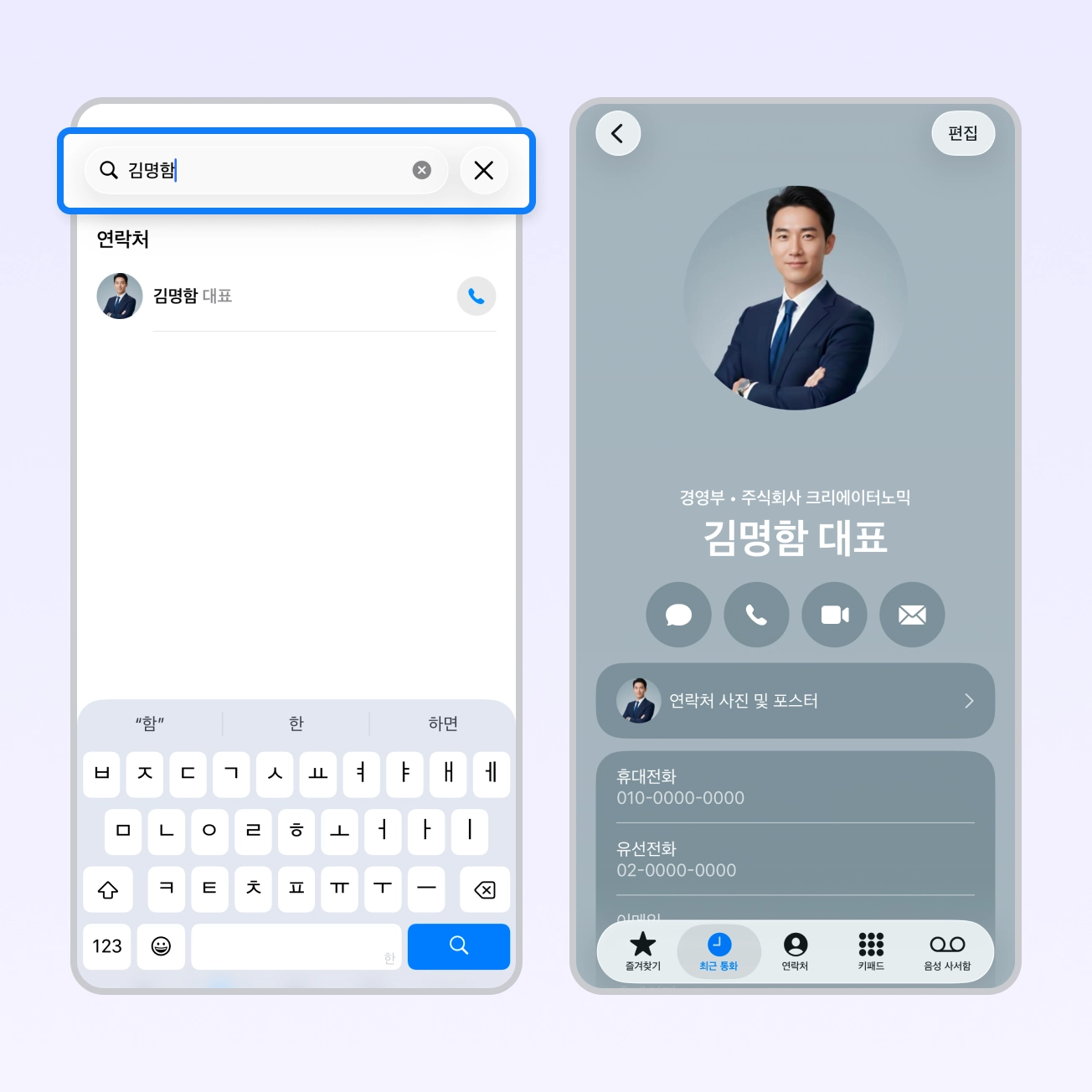 1. 전화 앱에서 이름 또는 연락처를 검색합니다.