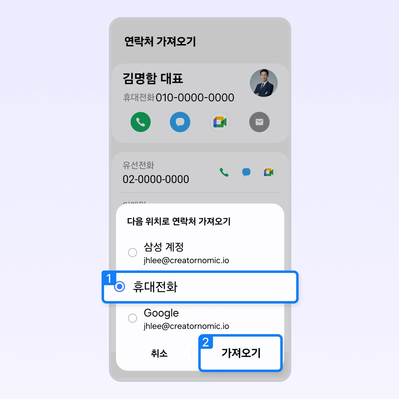 - 명함 저장법 2개: 앱 저장, 연락처 저장