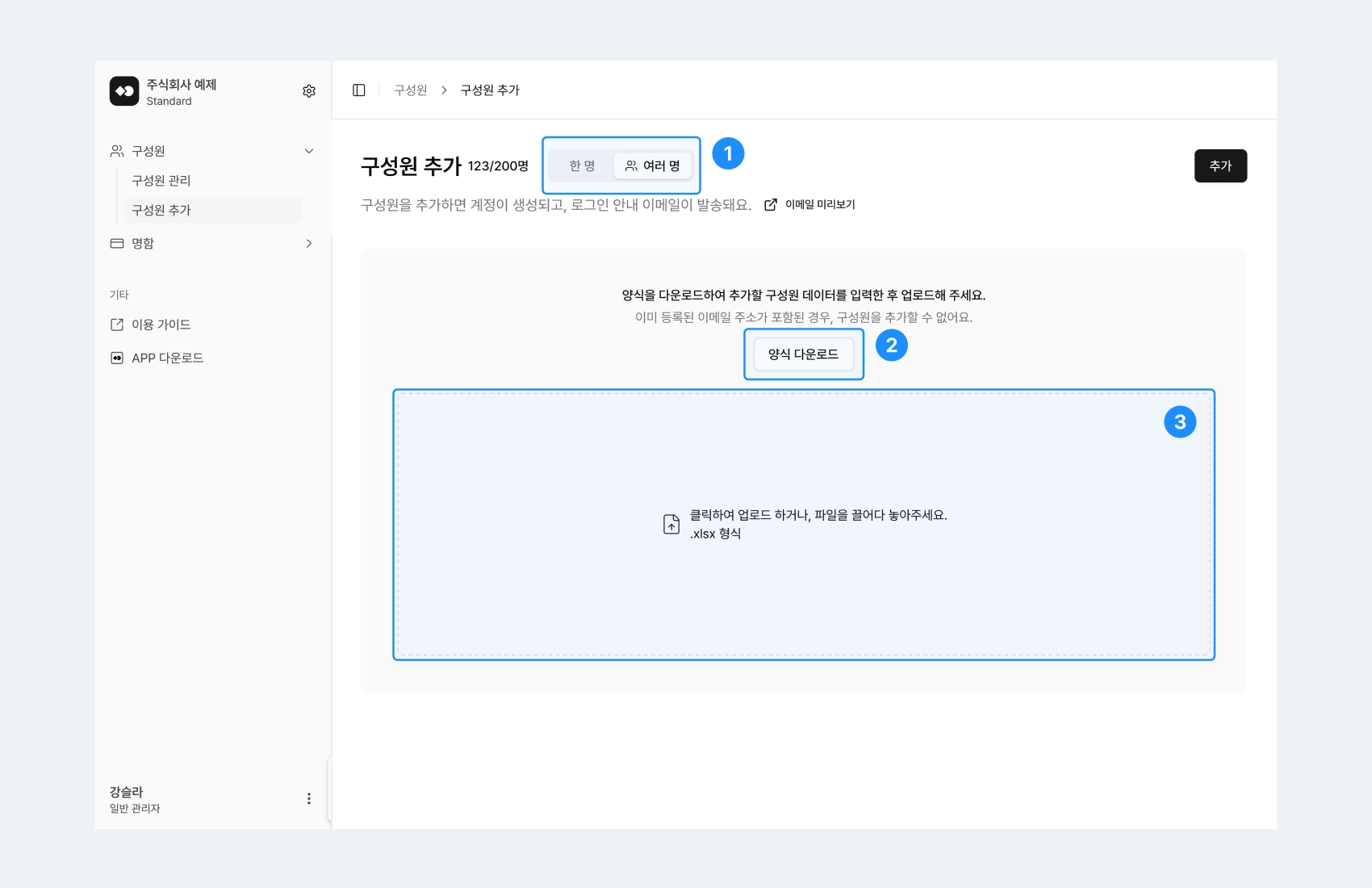 2-1) 구성원 관리 / 구성원 추가 / 여러 명
